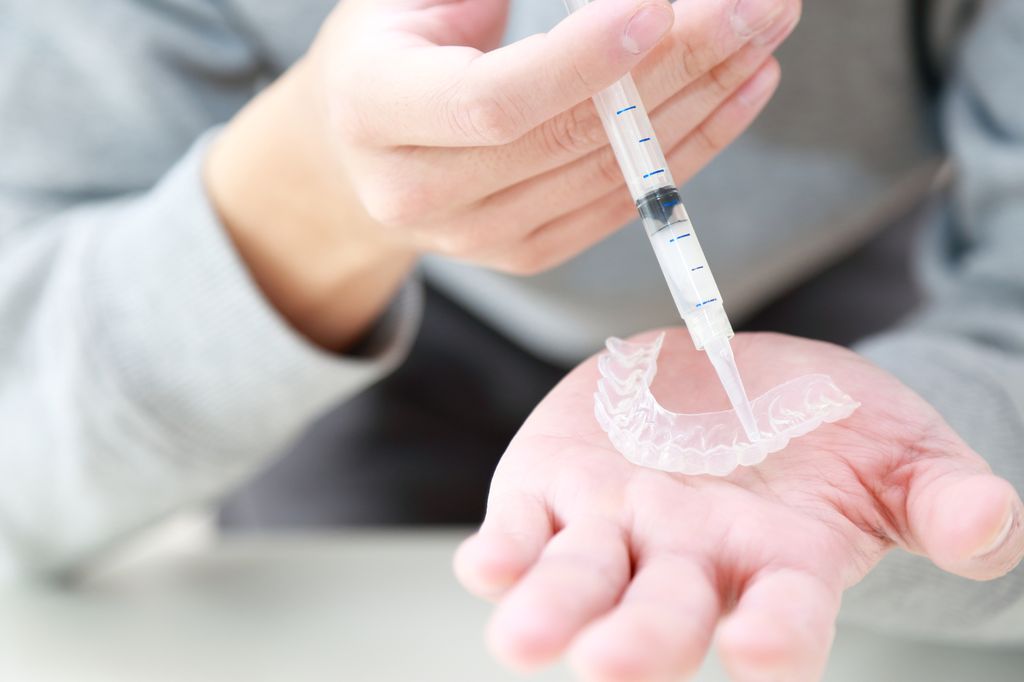 マウスピース型のトレーに薬剤を流し込み、毎日決められた時間、お口に装着してください。